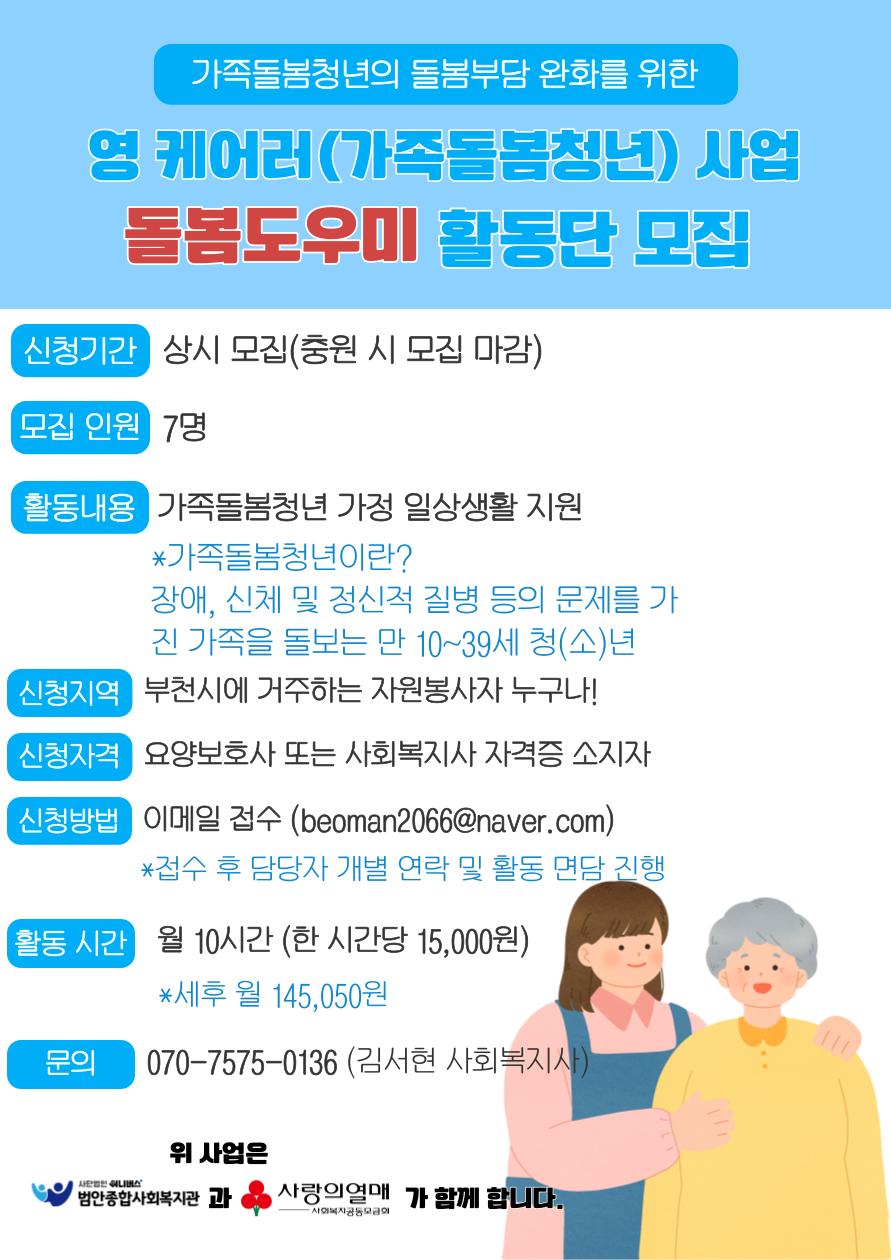 [범안종합사회복지관] 요양보호사 활동단을 모집합니다.