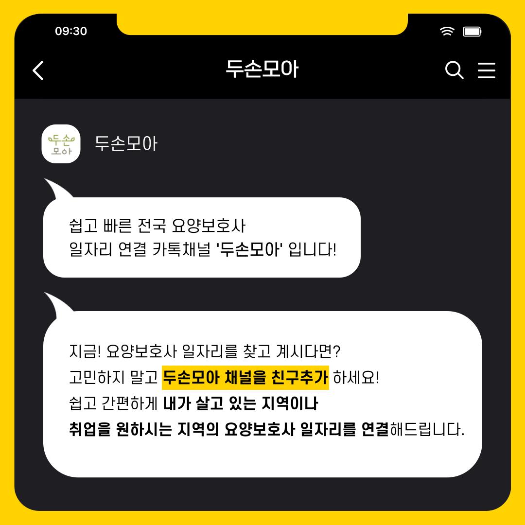 전국 요양보호사 일자리 소개! 카톡채널 '두손모아'